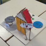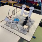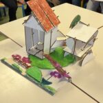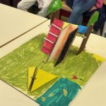4) Création d’une maquette : Une fois le projet abouti sur le papier, est venu le temps de la fabrication de la maquette à l’aide du matériel apporté par les animatrices.