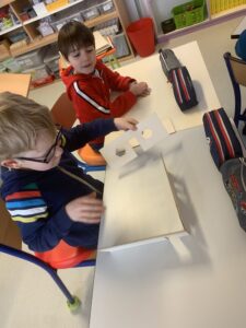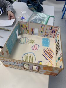 En petits groupes, ils conçoivent des projets sous forme de maquettes. Chaque groupe propose des petites installations urbaines qui explorent de nouveaux usages. « Notre ville ressemblerait à…. »