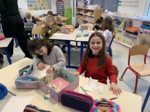 Dans le cadre du Projet Culturel de Territoire de Saint Nazaire aglo, l’animation « Ta ville entre tes mains » a permis aux élèves de CP une première approche de l’architecture et de la ville à partir de leur environnement proche. A travers un parcours de découverte et de création mené au fil de quatre séances de 2 heures, les élèves ont exploré leur quartier, analysé ses transformations et imaginé de nouvelles manières de l’habiter.